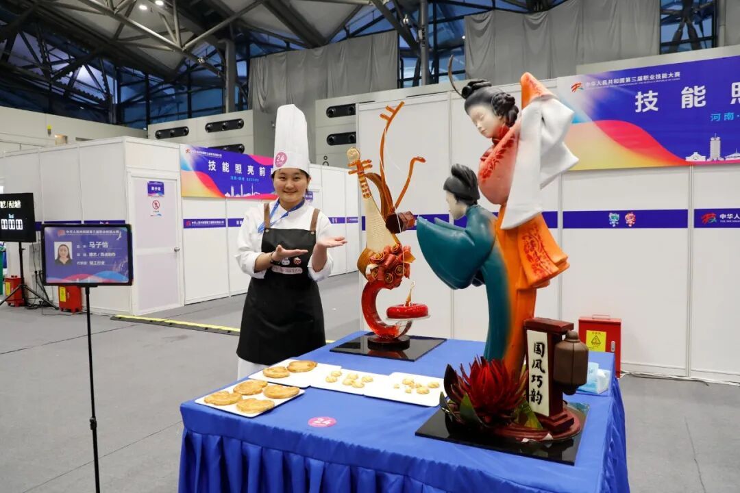 糖艺/西点制作项目选手马子怡比赛现场